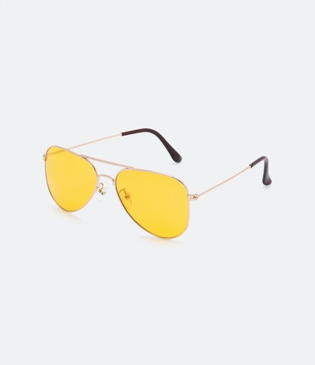 Óculos de Sol Aviador em Metal com Lente Amarela