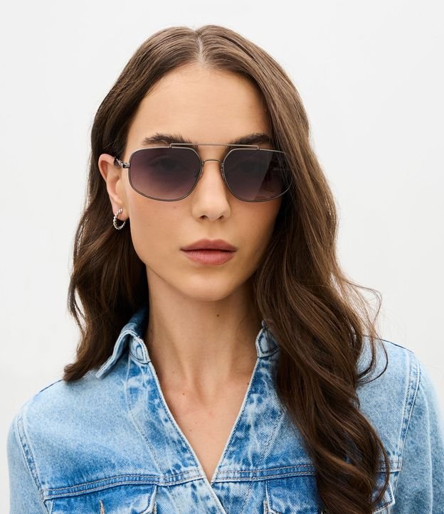 Óculos de Sol Aviador em Metal com Ponte Alta Dupla Cinza
