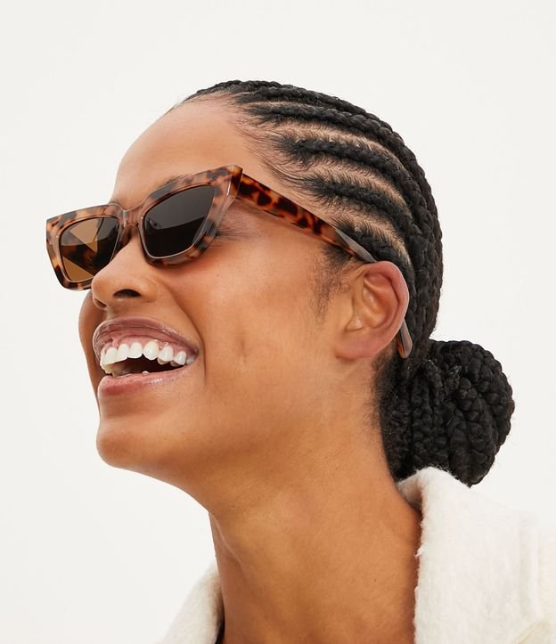Óculos de Sol Gateado com Armação Média em Animal Print