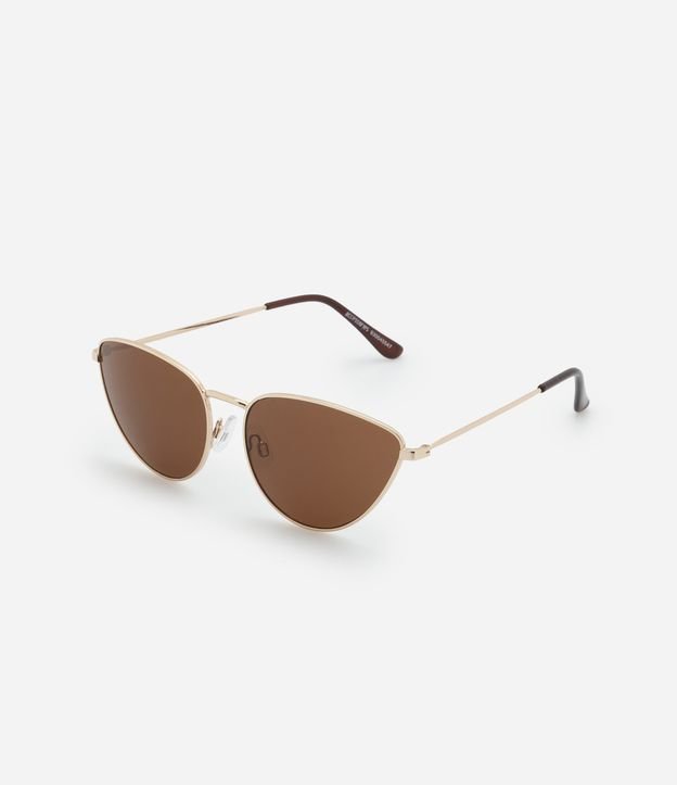 Óculos de Sol Gateado em Metal com Aro e Hastes Fina