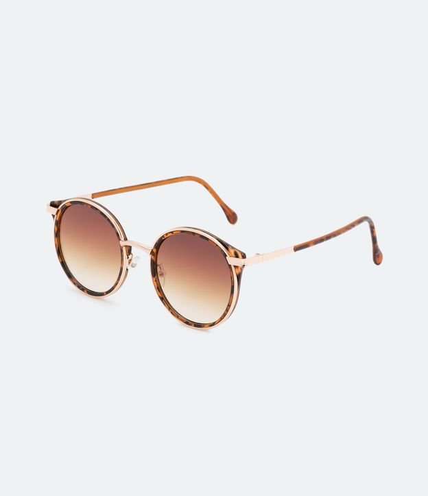 Óculos de Sol Redondo com Detalhe Tartaruga no Puxadinho do Aro