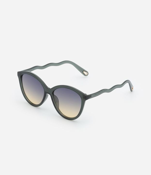 Óculos de Sol Redondo com Haste Ondulada Verde