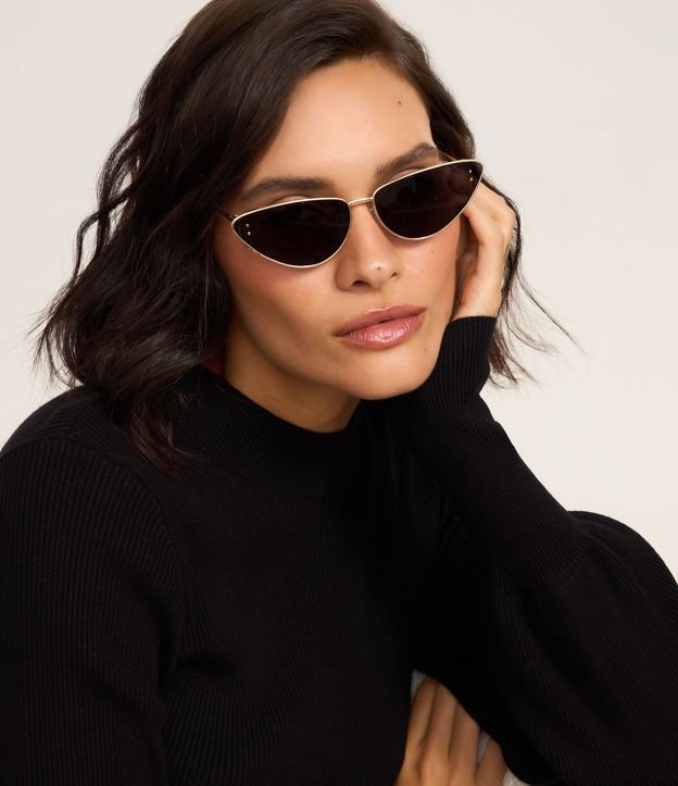 Óculos Gateado em Metal com Haste Detalhada e Lente Fumê