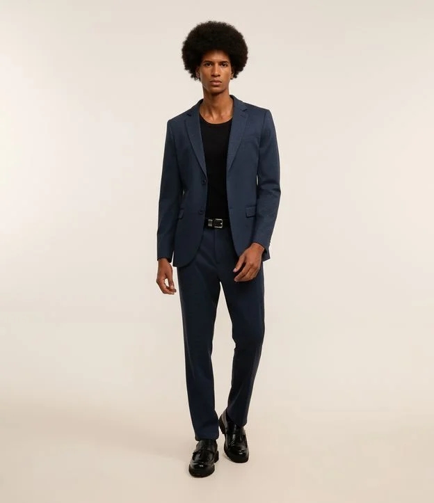 Paletó Alfaiatado em Viscose com Elastano Azul Marinho