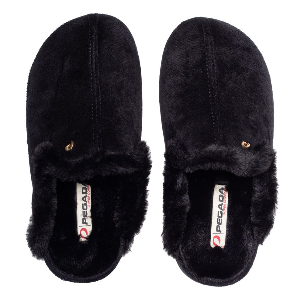 Pantufa Feminina Pegada Com Forro de Pelinho Preto