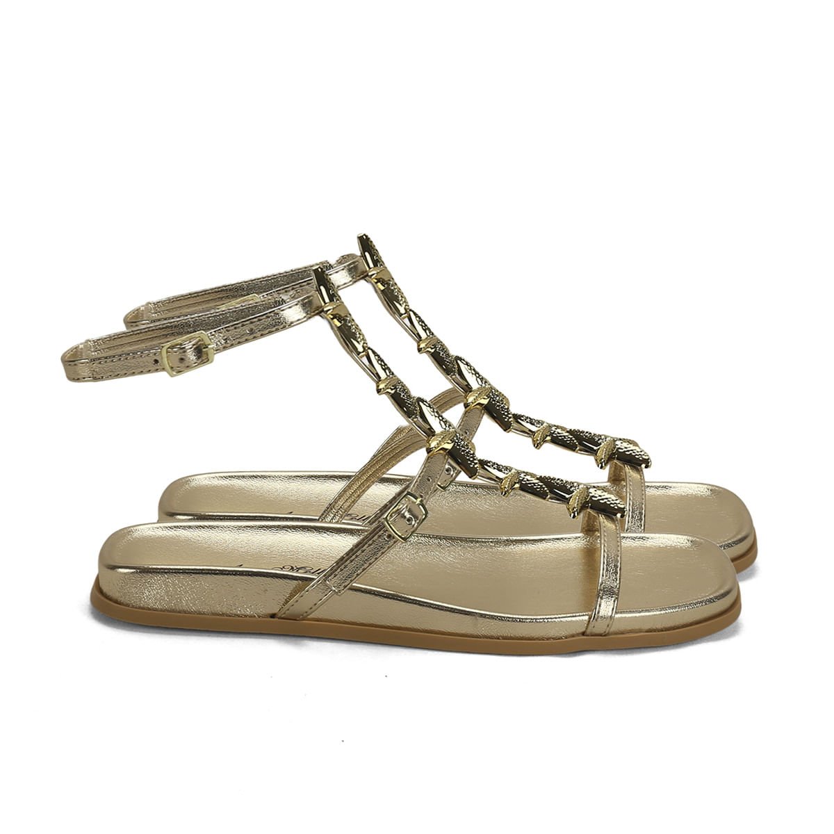 Principais Características do Produto 0: Luz nos Pés: Metalizado ouro light com detalhes marítimos luxuosos.