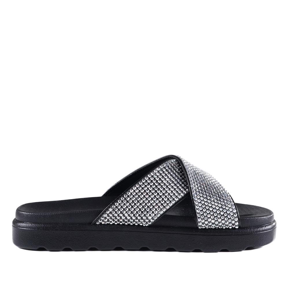 Detalhe de strass nas tiras, adicionando brilho e charme ao design.