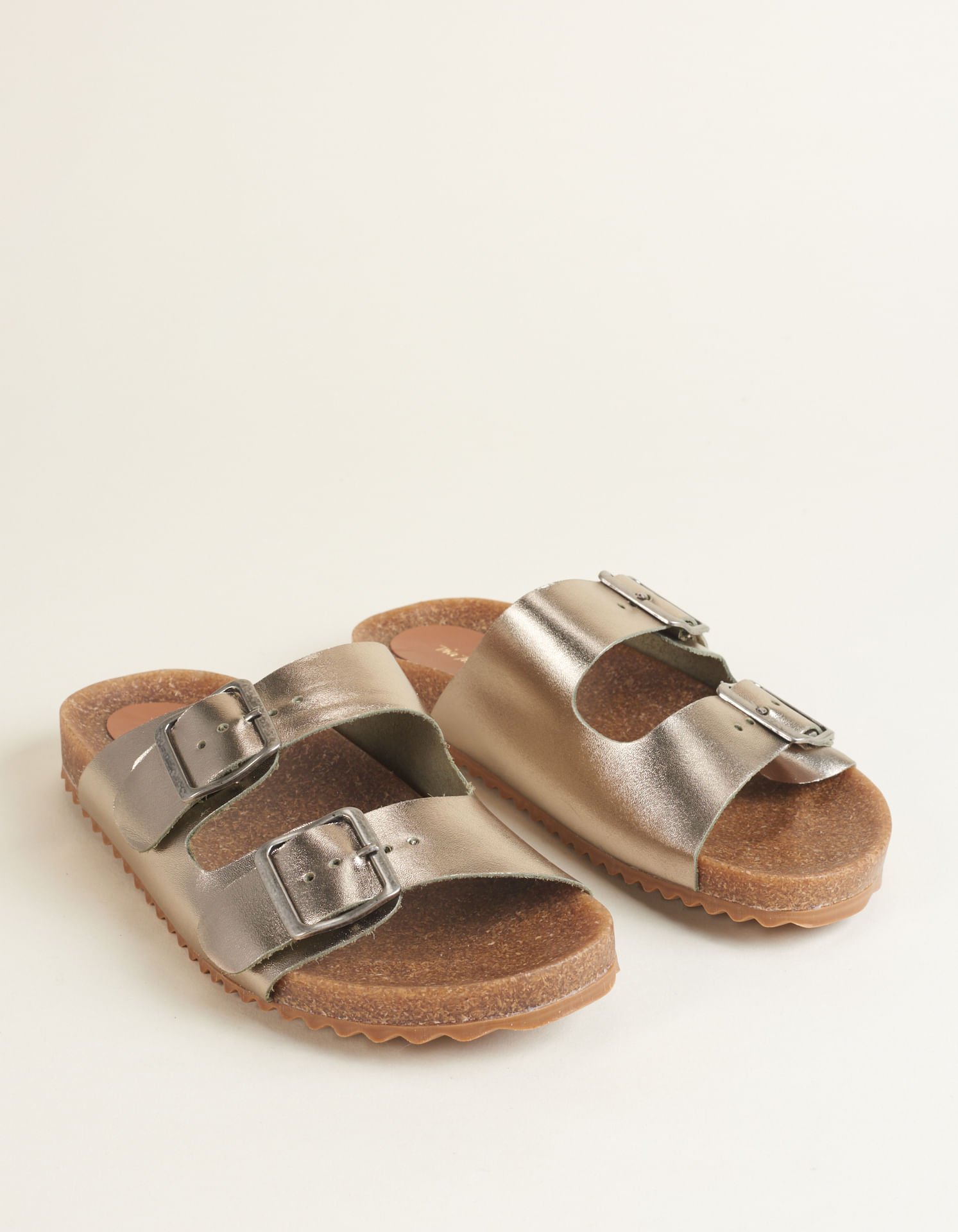 Sempre tem! Nossa Papete color em cores metalizadas! Papete de duas tiras em couro e fivela pintada na cor do modelo. Com palmilha e solado de cortiça, e sola de EVA na cor das tiras. Material: couro. Nas cores: ouro light, ouro e prata velho.