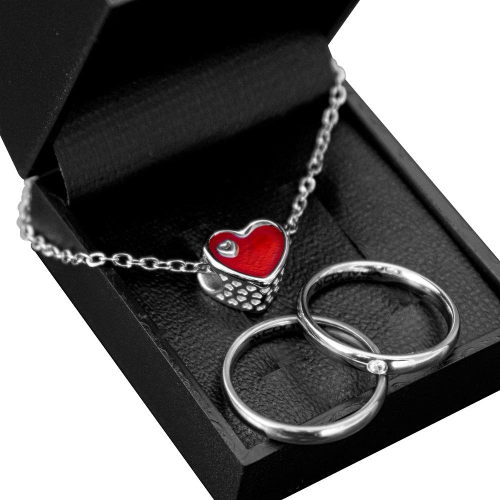 Par De Aliança Prata 3mm De Namoro + COLAR red Heart
