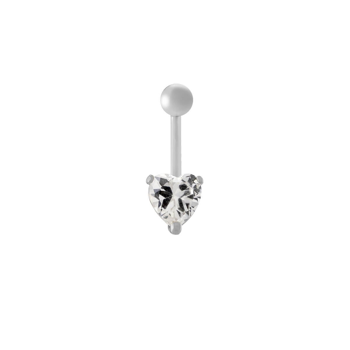 Piercing Umbigo Aço Cirúrgico Coração Zircônia Prata