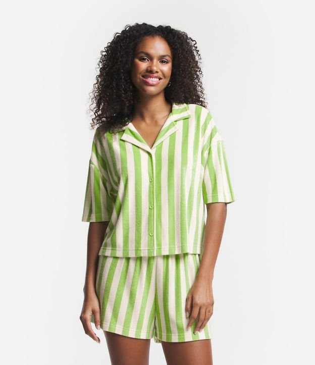 Pijama Americano Curto em Viscose Atoalhada com Abotoamento e Lapela
