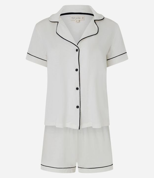 Pijama Americano em Viscolycra com Pipping Contrastante Branco