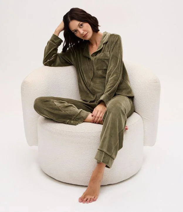 Pijama Americano Longo em Plush Verde