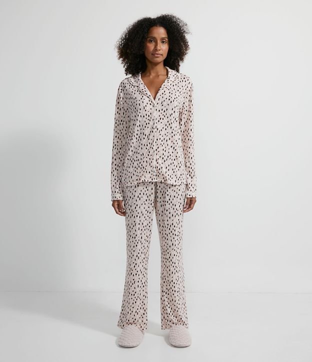 Pijama Americano Longo em Poliviscose com Estampa de Pintinhas