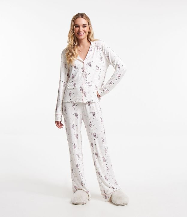 Pijama Americano Longo em Viscolycra com Estampa de Oncinha e Corações