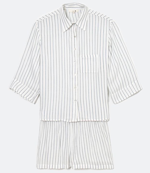 Pijama Americano Manga Curta Listrado com Bolso e Short