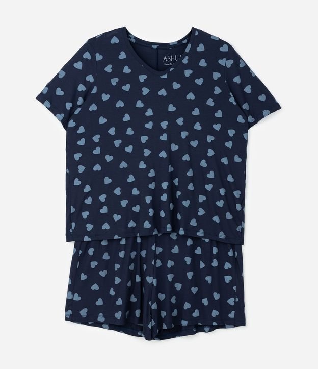 • Pijama Curto com Estampa de Corações Curve & Plus Size Azul 1