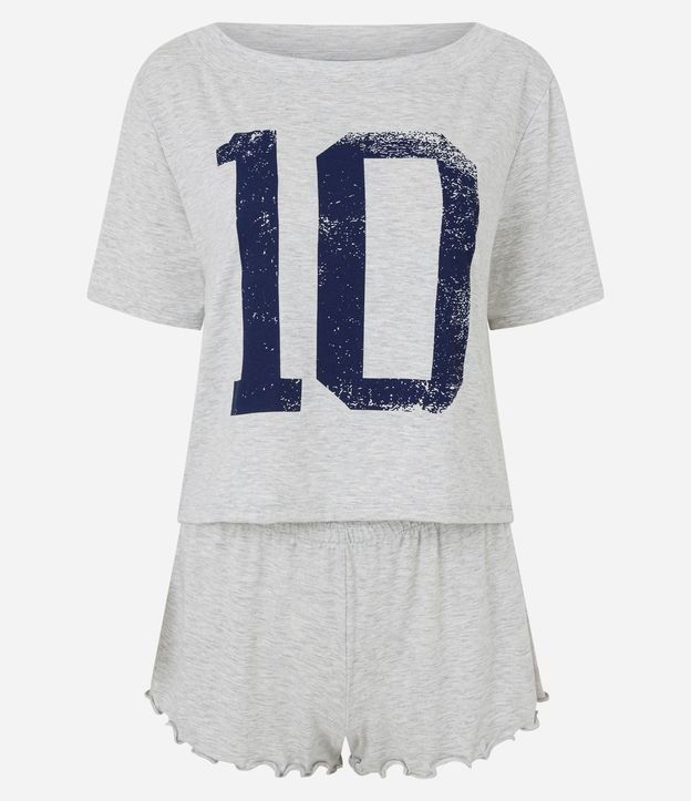 Pijama feminino em poliviscose confeccionado com viscose mais sustentável. Possui 02 peças: Blusa com manga curta e lettering com o número "10"; e short curto com detalhe delicado no cós e barra.