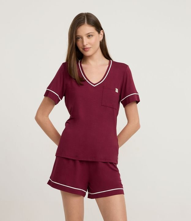 Pijama Curto em Viscose com Viés Contrastantes Vermelho