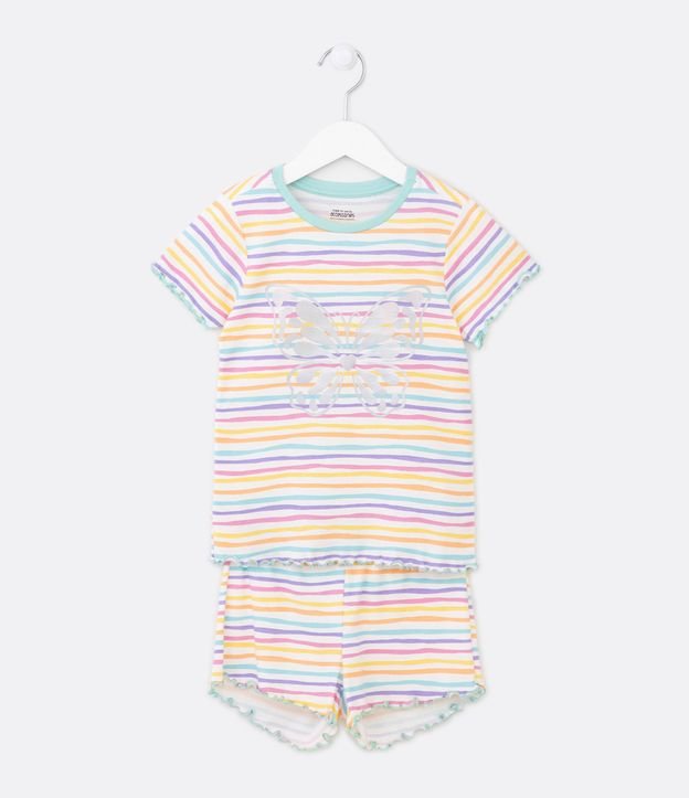 Pijama Curto Infantil com Estampa Listradinha Aquareladas com Borboleta - Tam 5 a 14 Anos