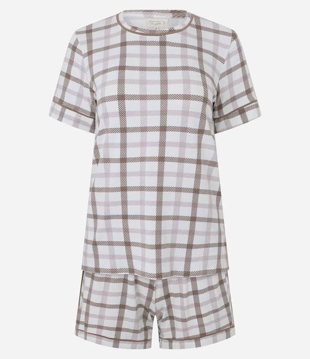 Pijama Curto Xadrez em Viscolycra Branco