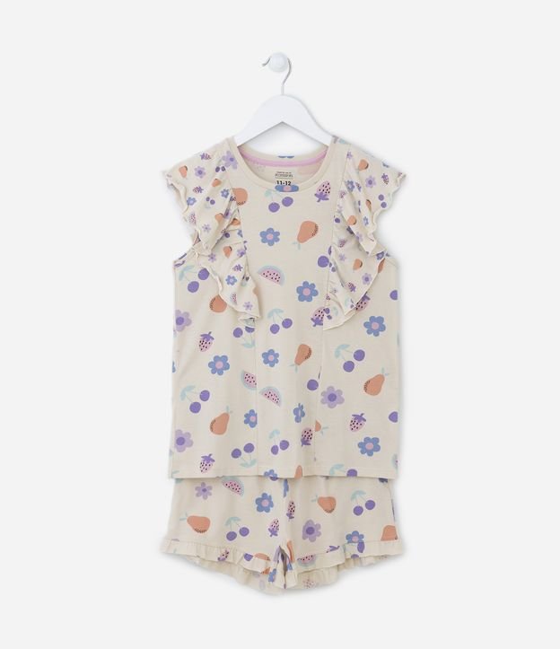 Pijama Infantil com Babados e Estampa de Frutinhas - Tam 5 a 14 anos