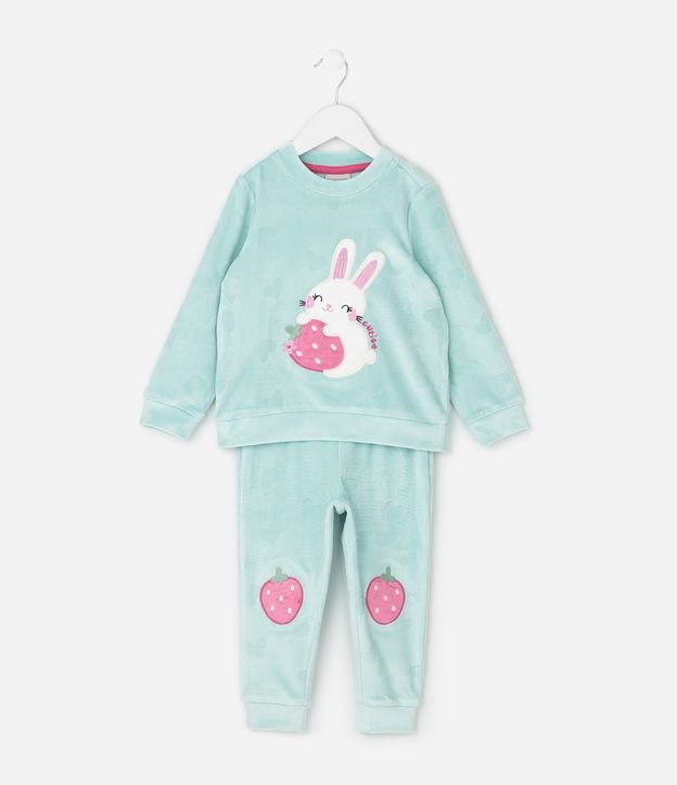 Pijama Infantil com Bordado Coelhinho e Morangos – Tam 2 a 6 Anos Verde claro