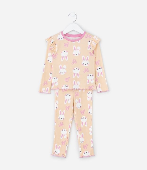 Pijama Infantil com Estampa Coelhos e Babados – Tam 1 a 6 Anos Bege
