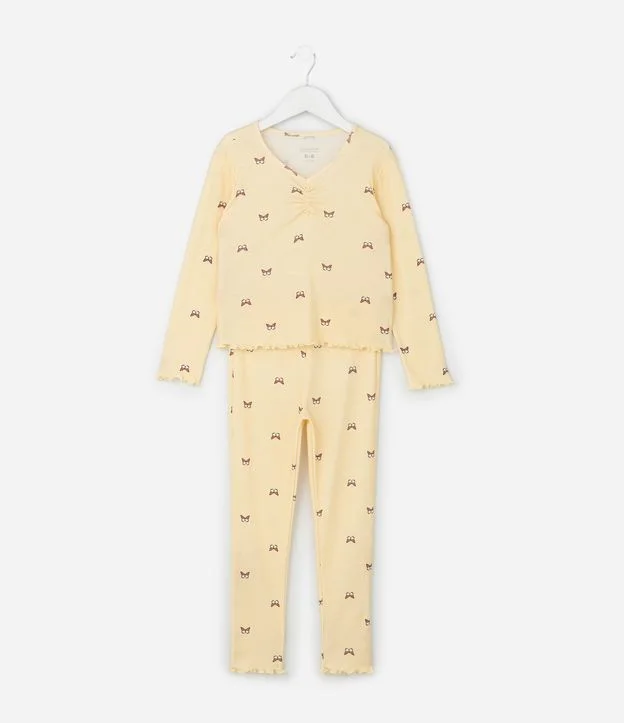 Pijama Infantil com Estampa de Borboletas – Tam 5 a 14 Anos Amarelo Claro