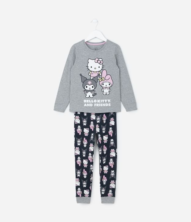Pijama Infantil com Estampa Hello Kitty e Amigas - Tam 5 a14 Anos Cinza