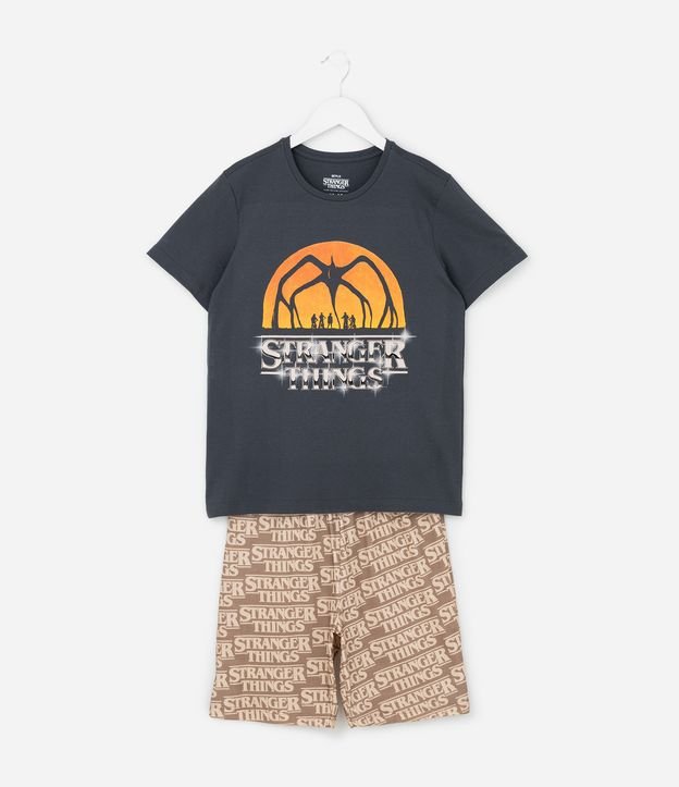 Pijama Infantil com Estampa Stranger Things - Tam 10 a 16 Anos Cinza/Marrom