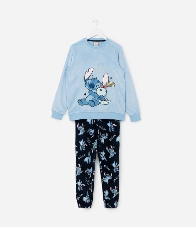 Pijama Infantil em Fleece com Bordado Stitch e Xepa - Tam 5 a 14 Anos