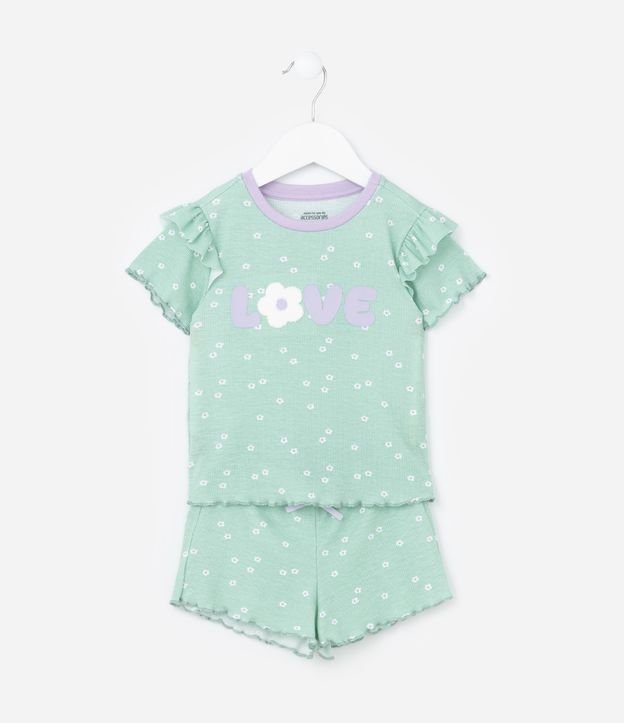 Pijama Infantil em Ribana Bordado e Babados - Tam 2 a 4 Anos