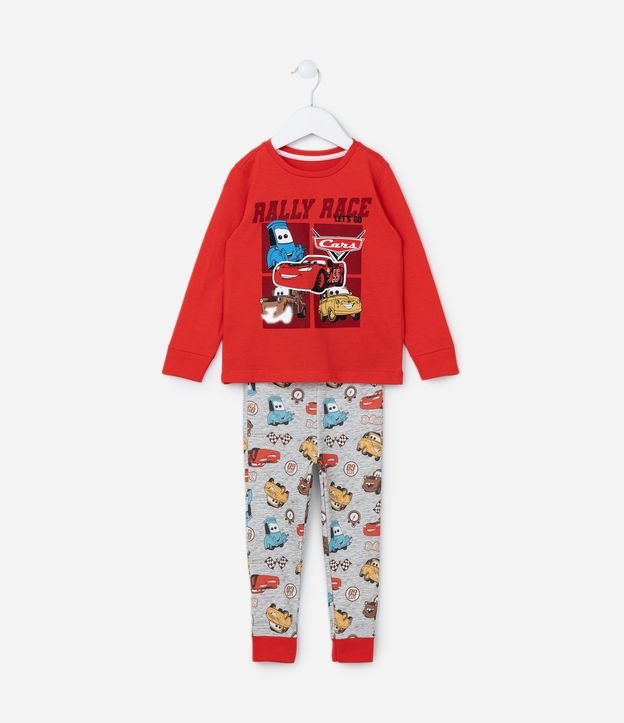 Pijama Infantil em Ribana com Carros - Tam 2 a 6 Anos Vermelho/Cinza