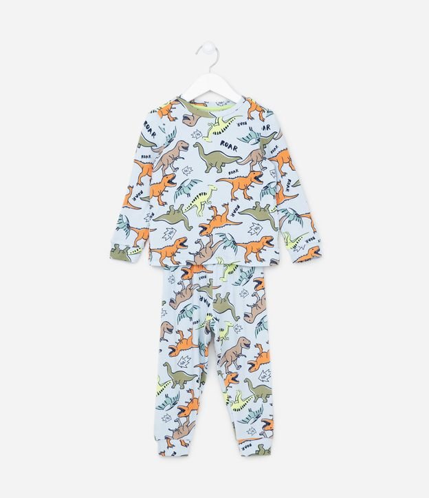 Pijama Infantil em Tricô com Toque Suave Estampa Dinos - Tam 2 a 10 anos