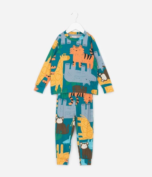 Pijama Infantil Longo em Plush com Estampa de Animais – Tam 2 a 6 Anos Verde