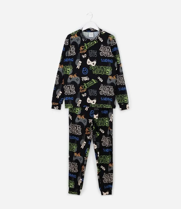 Pijama Infantil Longo em Plush com Estampa de Skate – Tam 7 a 14 Anos Preto