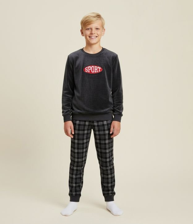 Pijama Infantil Longo em Plush com Estampa Racer – Tam 7 a 16 Anos Preto Grafite