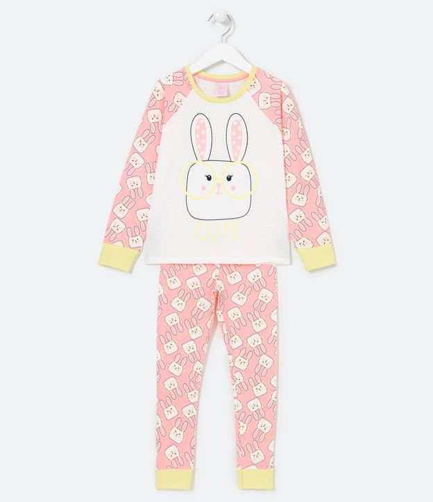 Pijama Infantil Longo Estampa de Coelho com Óculos - Tam 5 a 14 anos