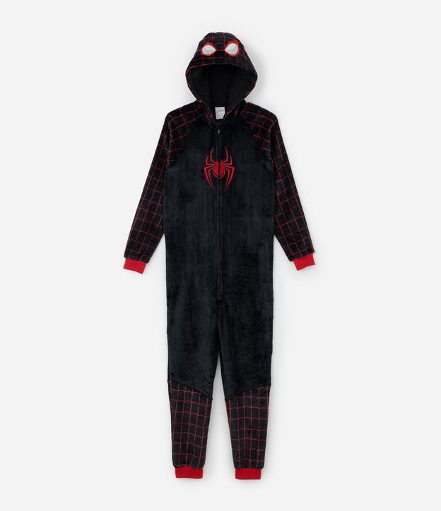 Pijama Jumper Infantil em Fleece com Bordado Homem Aranha - Tam 4 a 14 Anos Preto