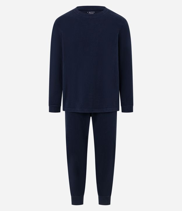 Pijama Longo em Fleece com Textura e Manga Longa Azul Escuro