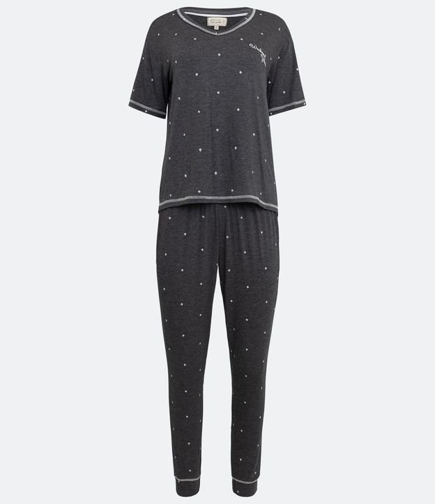 Pijama Longo em Meia Malha com Bordado no Peito