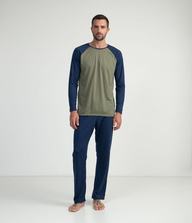 Pijama Longo em Poliviscose com Manga Raglan