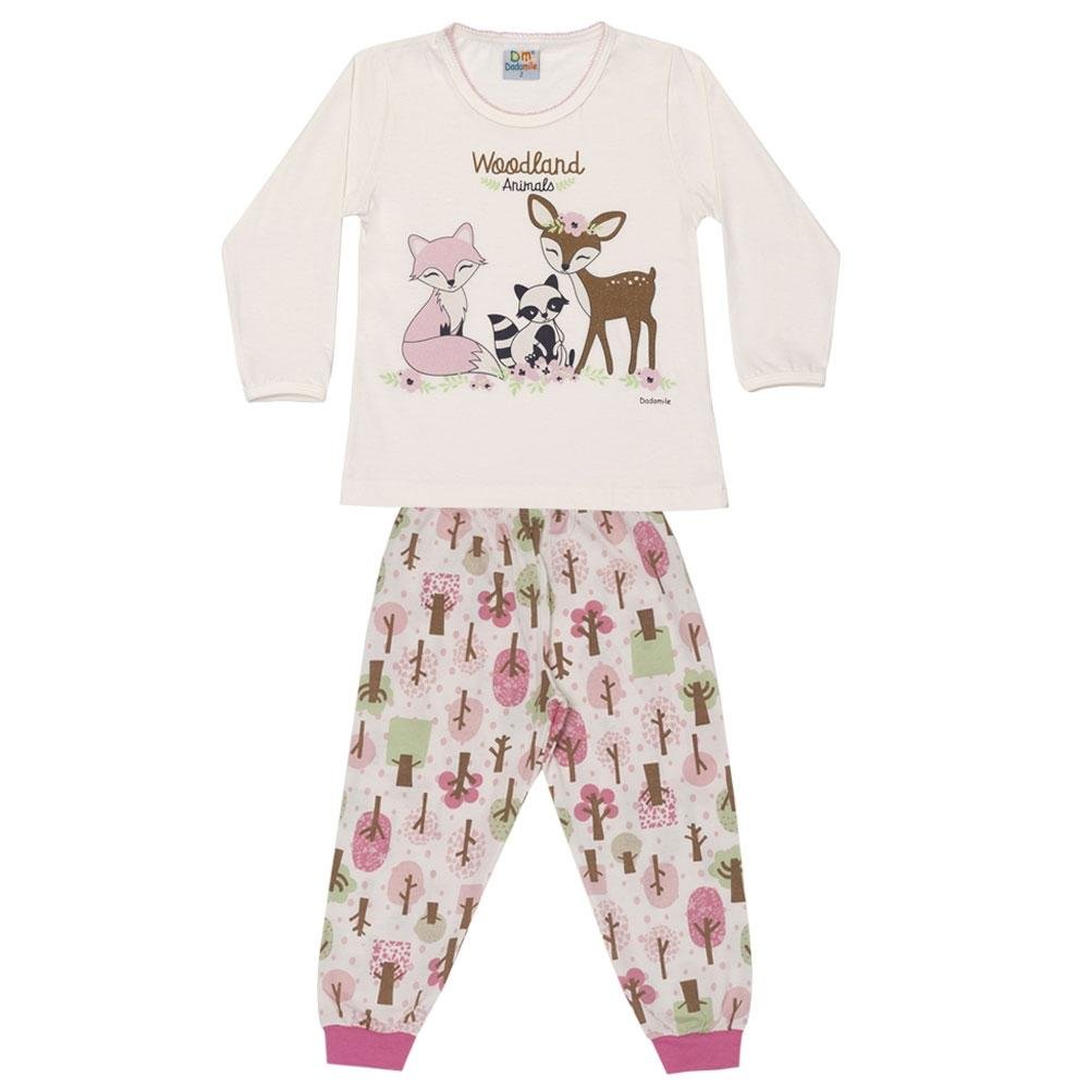 Pijama Longo Infantil Brilha No Escuro Floresta Dadomile Bege