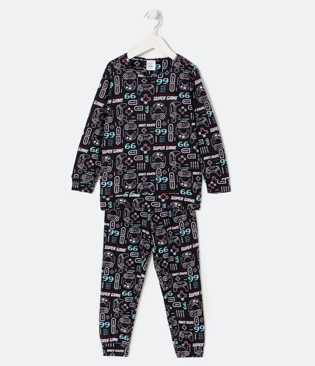 Pijama Longo Infantil com Estampa de Games - Tam 5 a 14 anos
