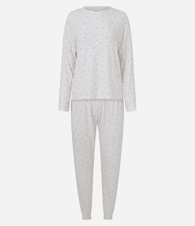 • Pijama Longo Jovem Feminino Toque Suave Corações Jogger Branco 1