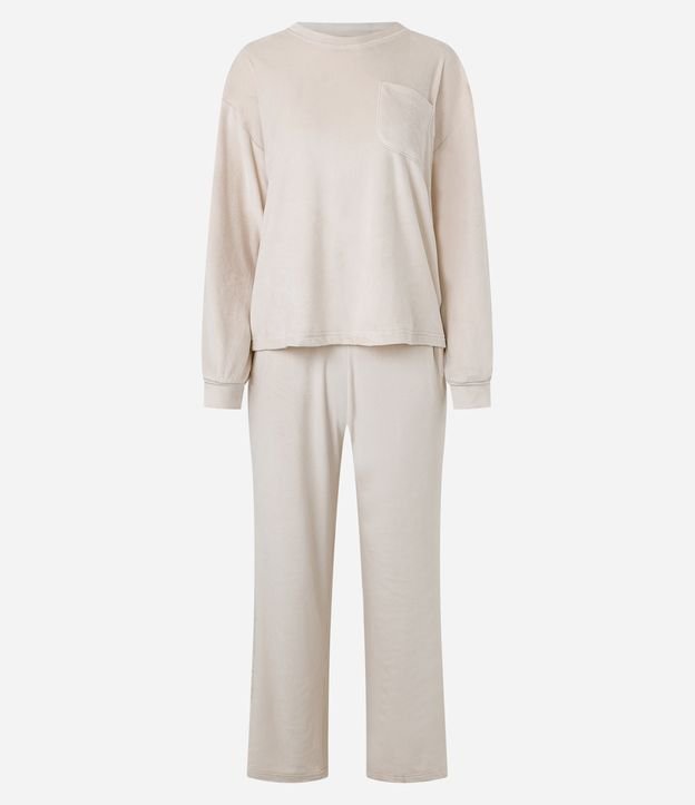 Pijama Pesado Feminino Plush Manga Longa Bege