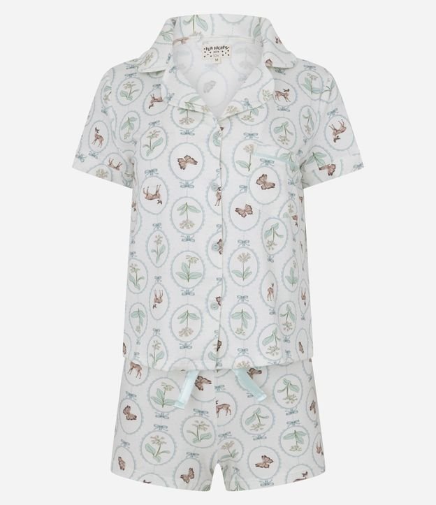 Pijama Short Doll Americano em Algodão Estampado Branco