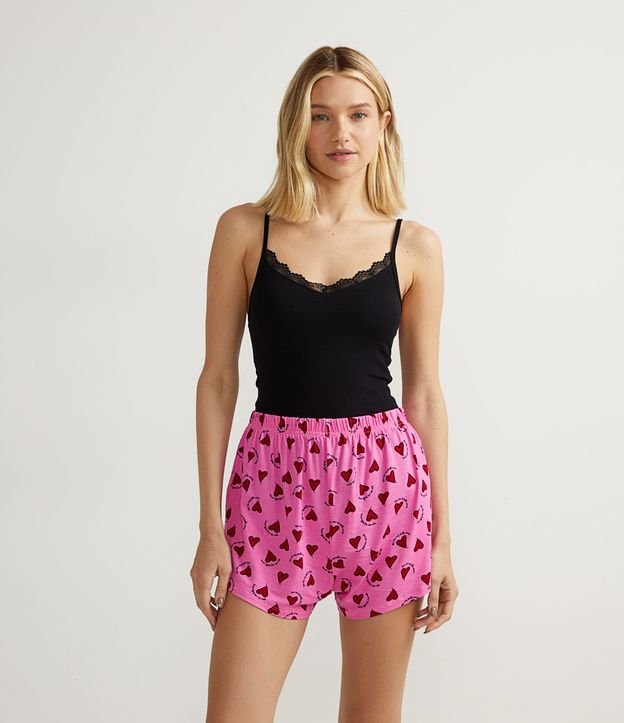 Pijama Short Doll em Ribana com Blusa de Alcinha e Short com Estampa de Corações