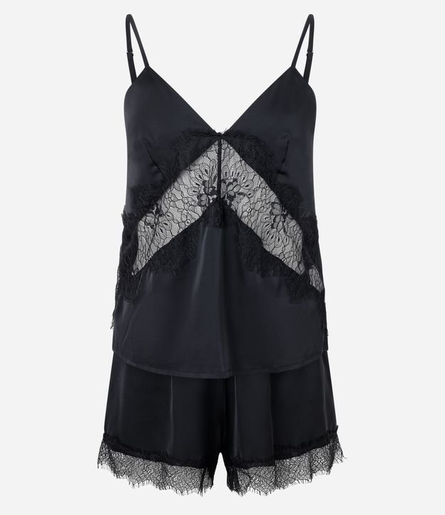 • Pijama Short Doll em Cetim com Renda Preto 5